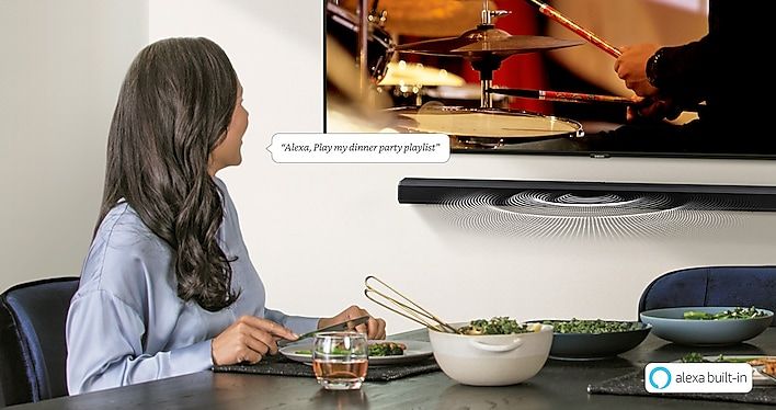 Завдяки вбудованому в звукову панель Alexa ви можете використовувати всі функції Alexa, зокрема відтворювати музику, запитувати про погоду та багато іншого, не потребуючи окремого пристрою.