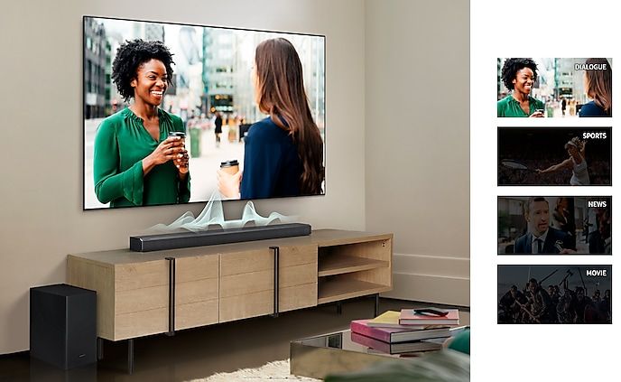 Забудьте перемотувати назад, щоб уловити сказане. Насолоджуйтесь динамічно оптимізованим звуком із покращеною чіткістю голосу під час перегляду всього, що ви дивитеся, включаючи спорт, ігри, фільми тощо.