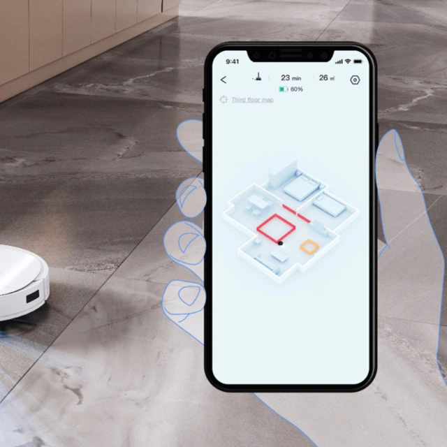 Ви можете заблокувати зони без очищення за допомогою Virtual Boundary™ і залишатися приватними за допомогою зональних обмежень у додатку ECOVACS HOME.