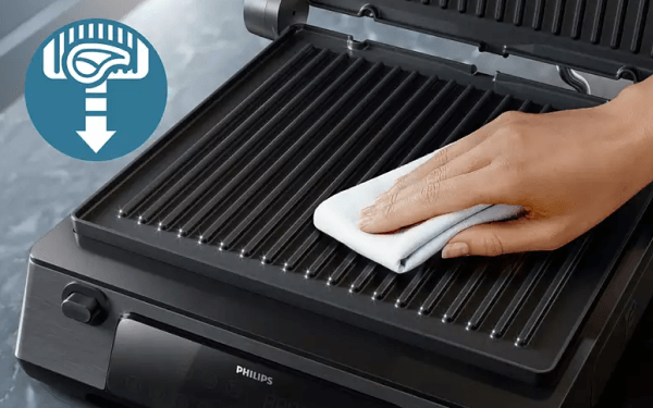 Пластини для гриля, які використовуються в моделі Philips Series 7000 HD6307/70, мають антипригарне покриття, завдяки якому приготована їжа легко знімається з решітки. Таке рішення також полегшує вміст гриля в чистоті, поготів, що пластини можна в будь-який момент зняти та промити під проточною водою.