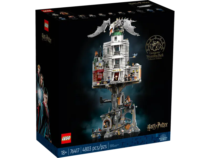 Колекційне видання LEGO® Harry PotterTM (76417) — оживіть сцени з фільмів про Гаррі Поттера в чарівному банці ГрінготтсTM за допомогою цієї складової моделі банку, трьох сховищ і рухомого українського бронзового дракона.