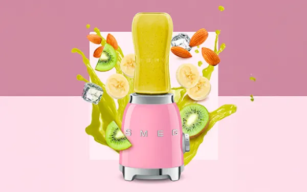Час для здорового, поживного смузі з Smeg PBF01WHEU. Обладнаний подвійними лезами та двома швидкостями, компактний блендер-глечик ретельно та швидко обробляє продукти. Ви можете насолоджуватися ними вдома та в дорозі!